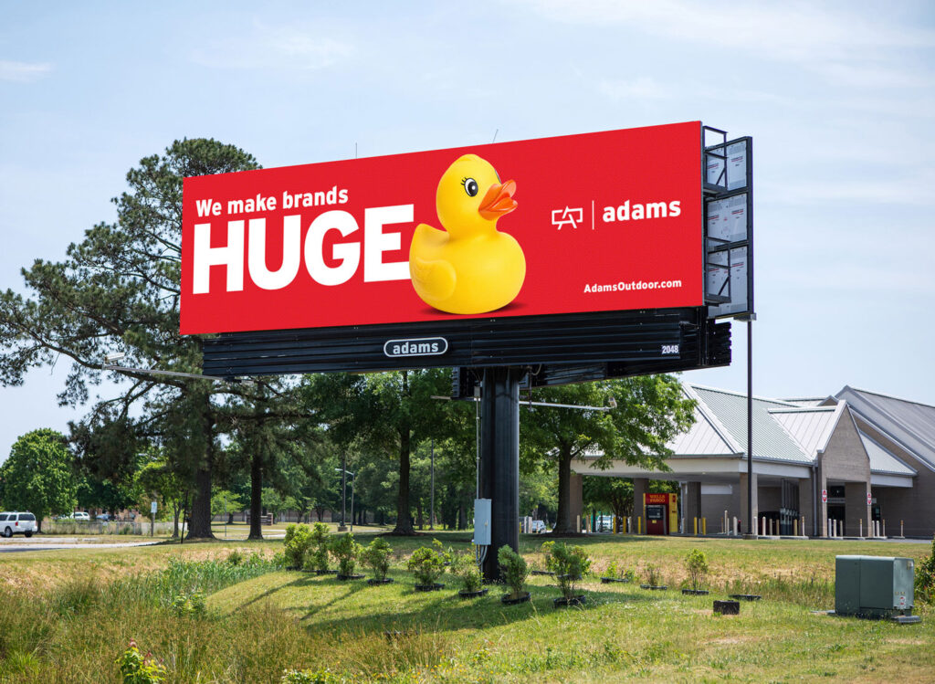 Today, the mystery is solved. The ducks were part of a bold, company-wide “tease and reveal” campaign designed to showcase the unique power of outdoor advertising. Adams’ AdLab – our in-house, award-winning creative team – designed every facet of the campaign, which included storytelling, custom creative, unique billboard extensions, and the production of more than 1,500 real-life rubber ducks.